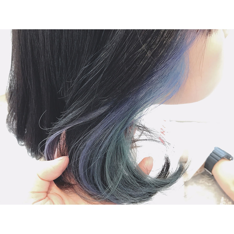 中をブリーチしてマニキュアでグリーンとブルーでハイライトを☆